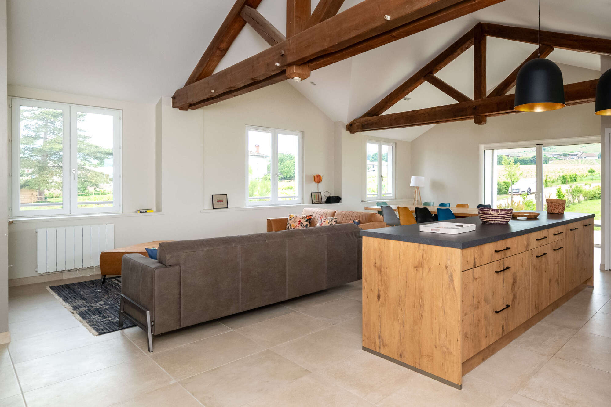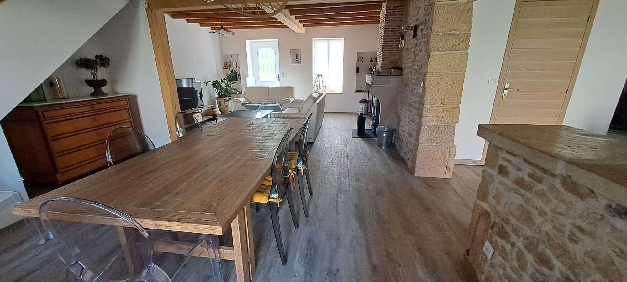 - Une grande pièce de vie lumineuse et chaleureuse, parfaite pour partager des moments en famille ou entre amis