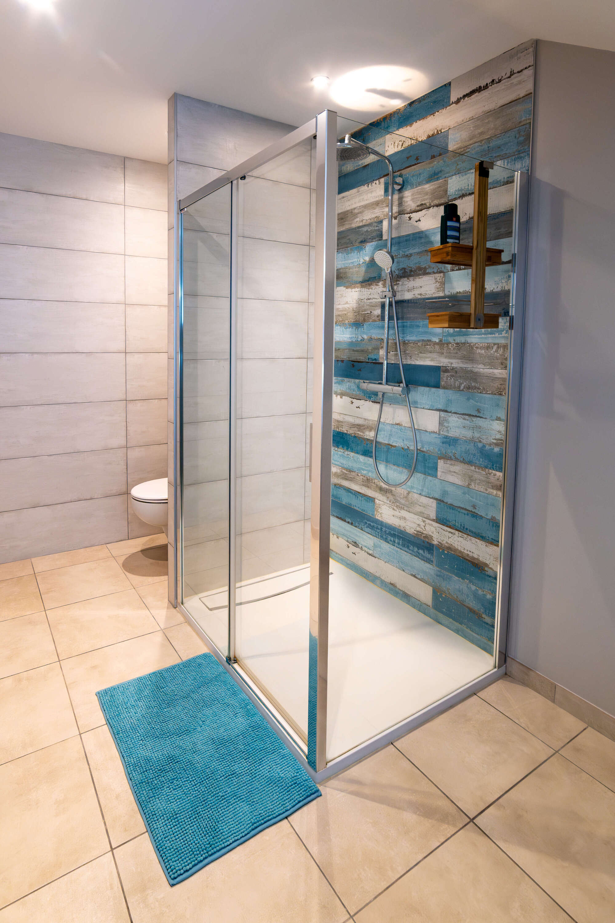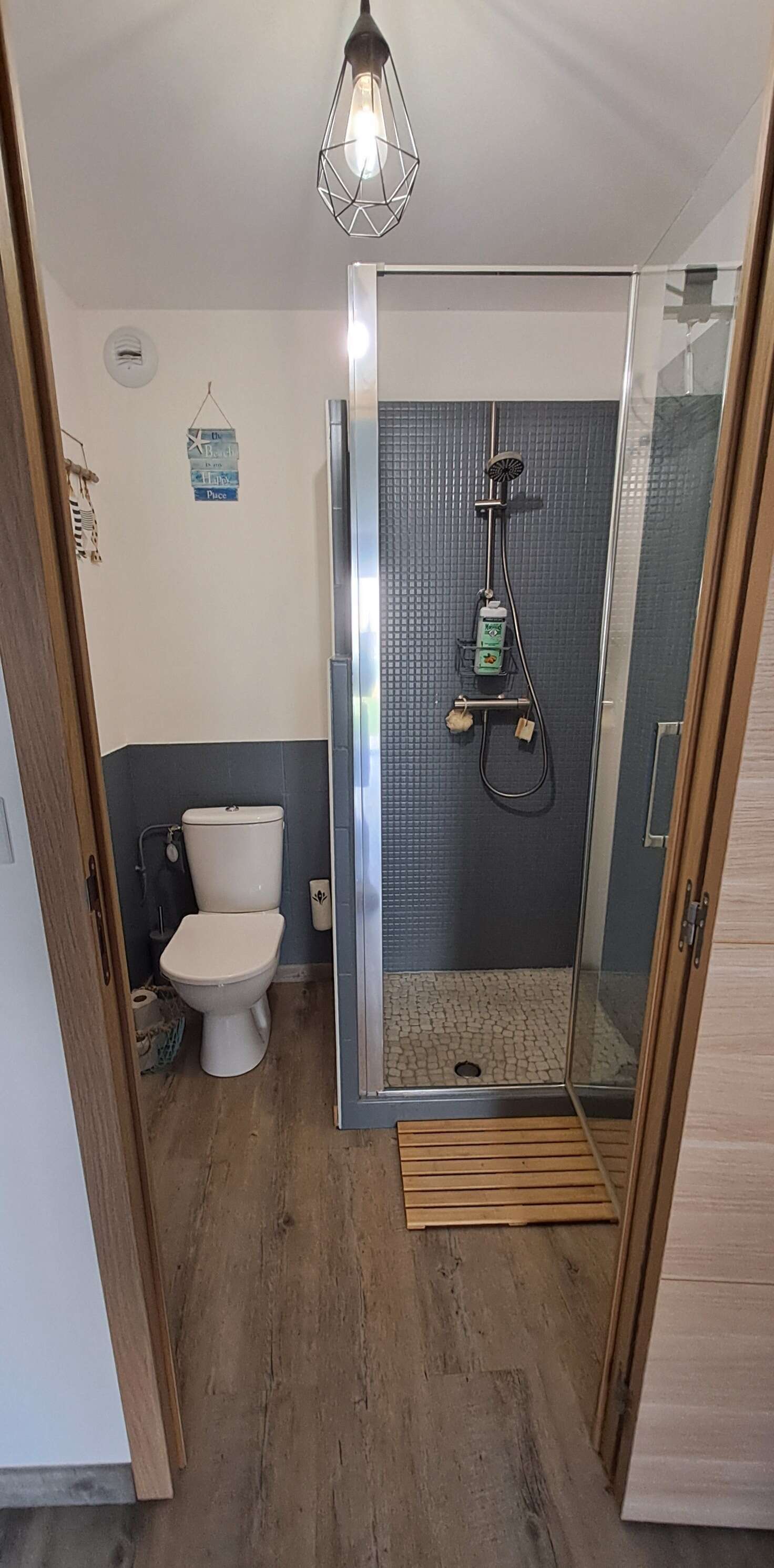 d'une salle d'eau avec douche et toilettes séparées
