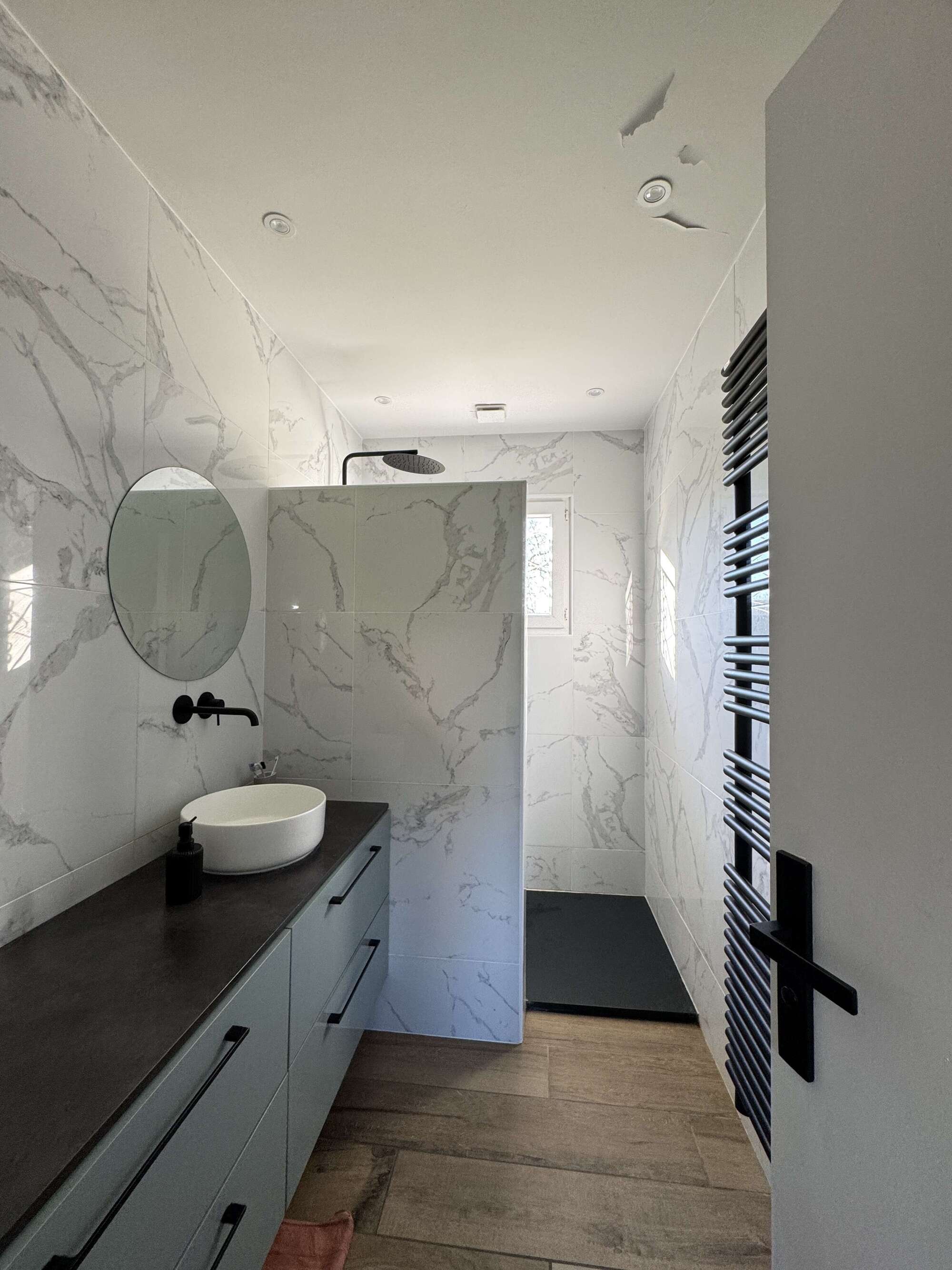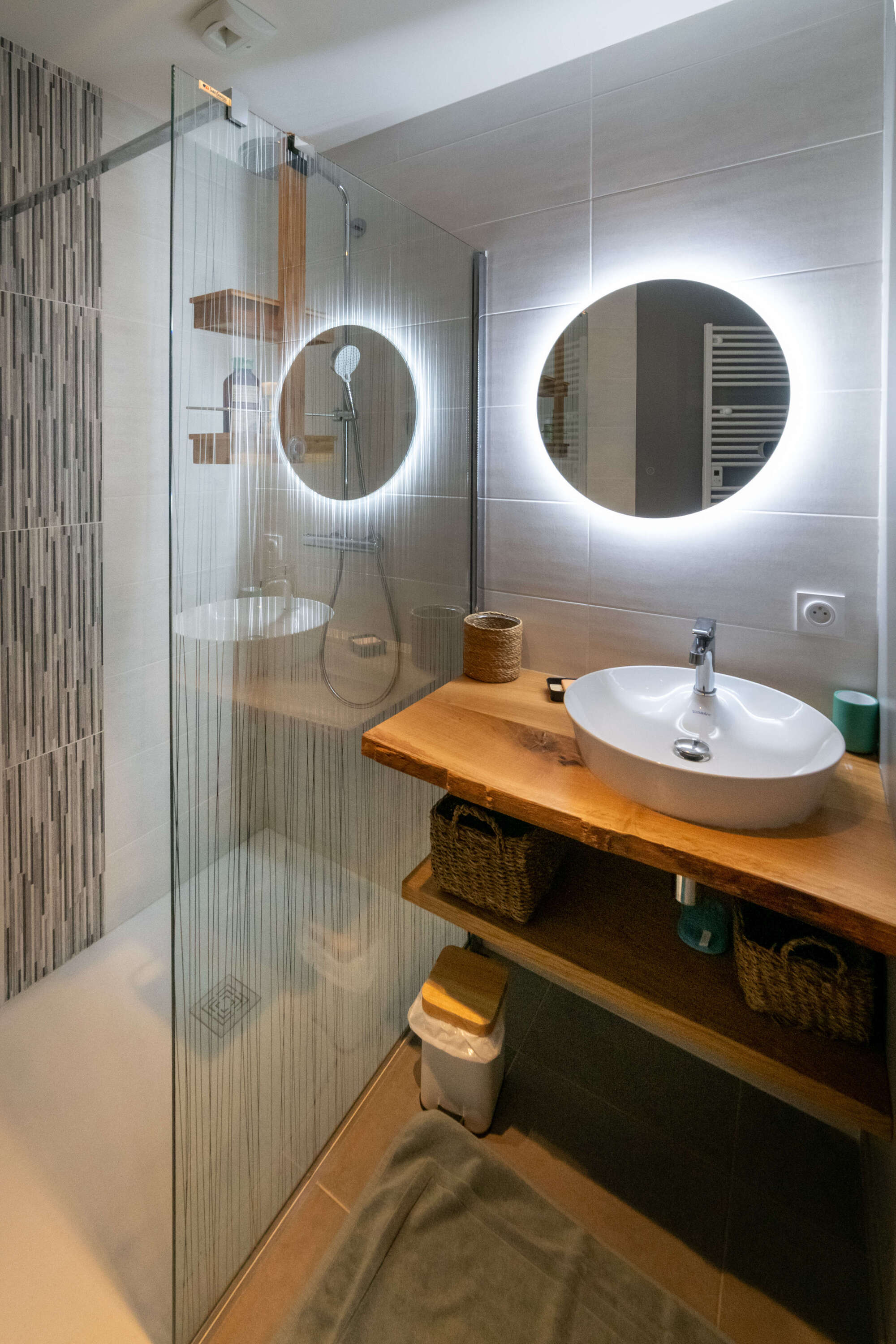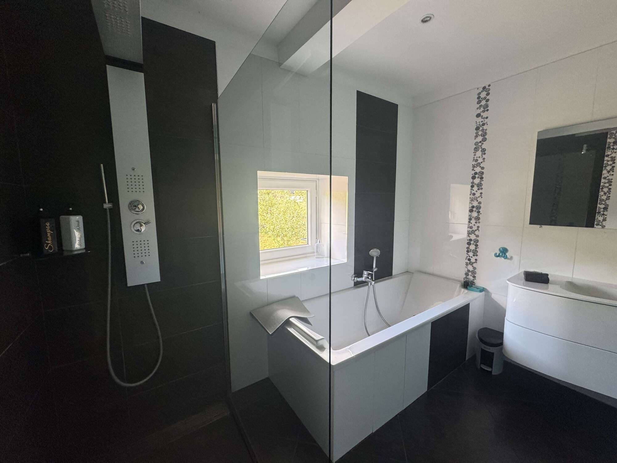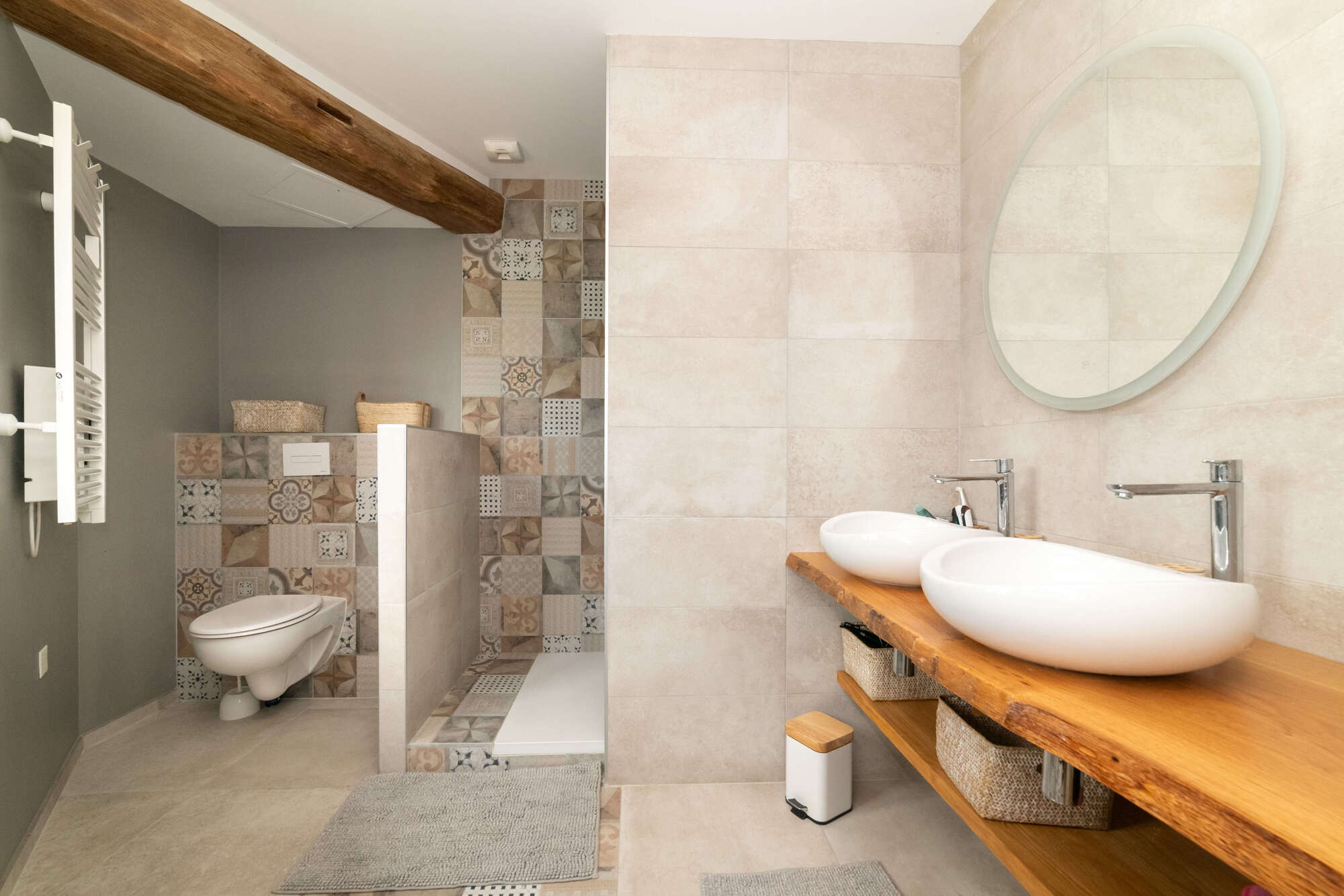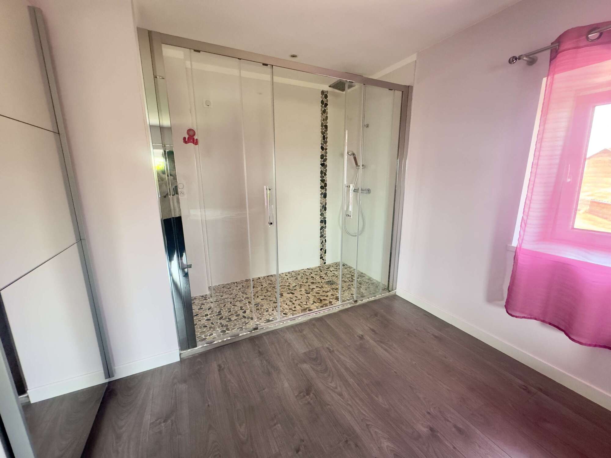 - 1 salle de douche avec WC, 1 salle de bain avec grande douche à l'italienne et 1 WC indépendant