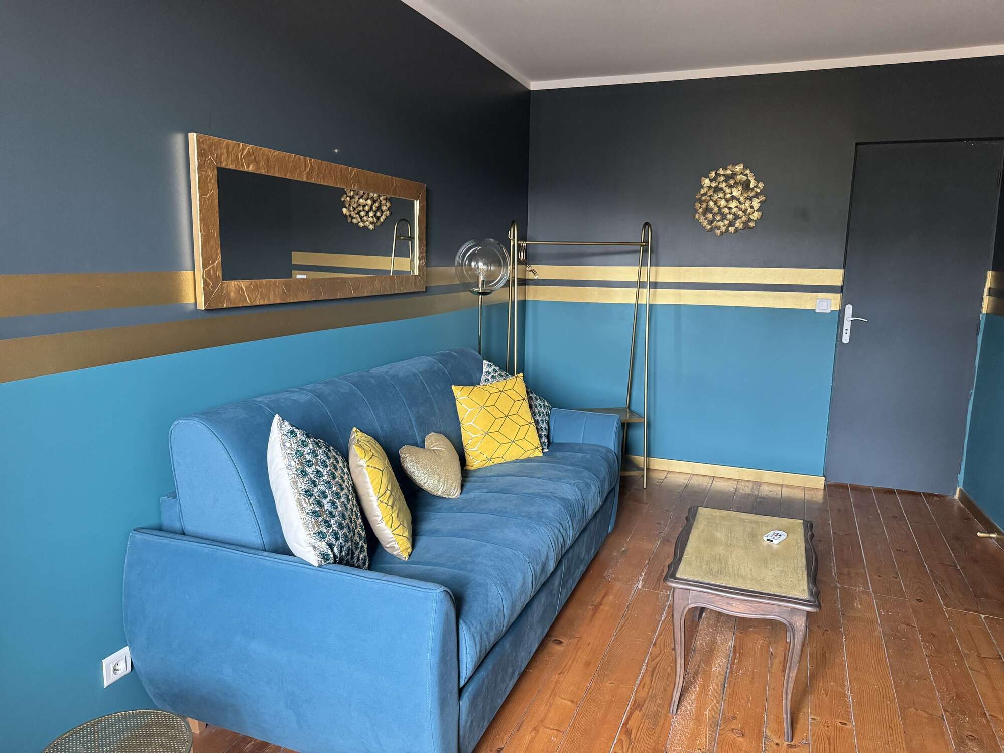 - Couchage d'appoint pour un enfant : Un canapé-lit est disponible pour accueillir un enfant, permettant à toute la famille de profiter du confort de cette chambre.
