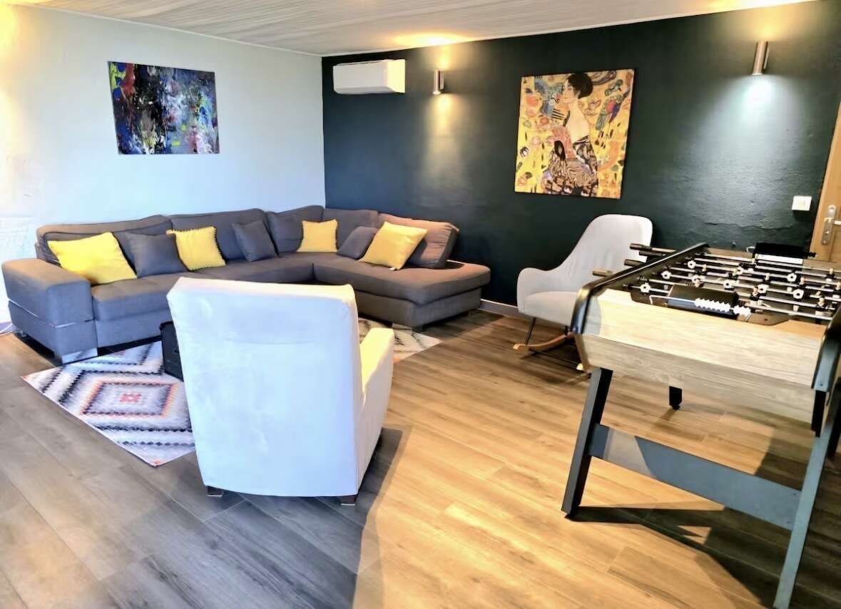 La maison spacieuse et conviviale offre de beaux volumes et peut accueillir jusqu’à dix personnes dans un cadre confortable et fonctionnel. Pensée pour les séjours en famille ou entre amis, elle combine espaces de vie généreux et extérieurs agréables avec vue.